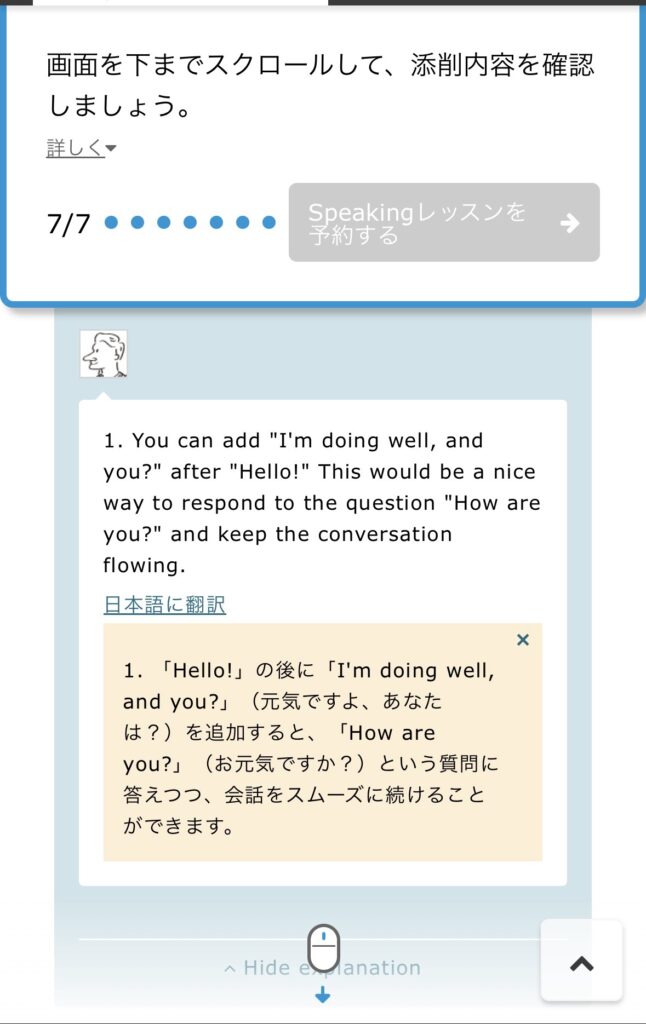 ひととおり、添削をされたら次はスピーキングの予約です。